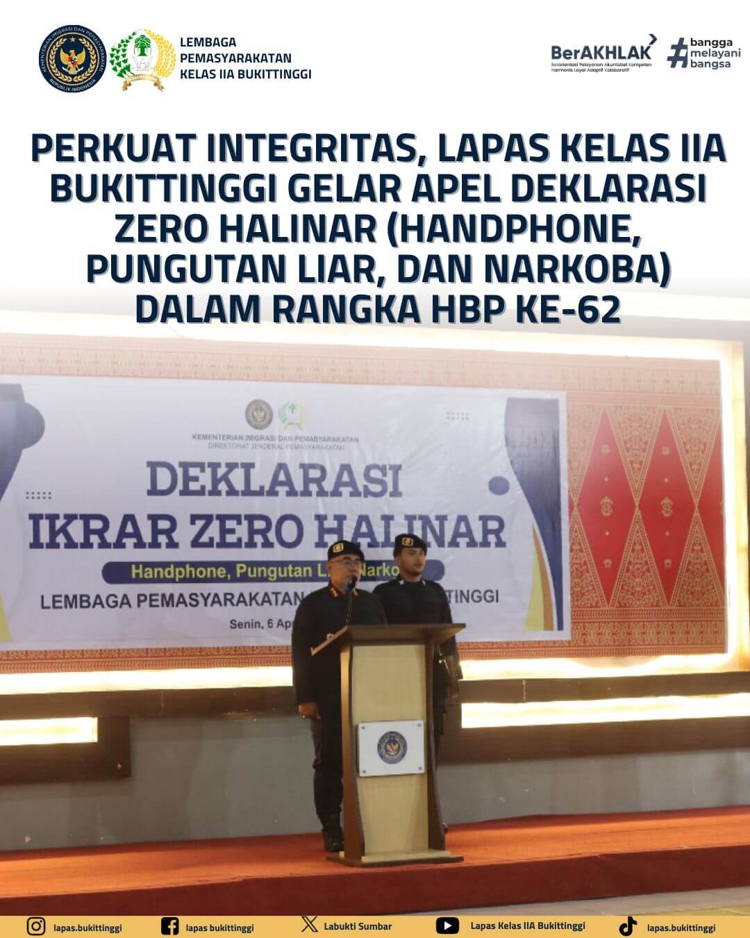 Lapas Bukittinggi Tegaskan Perang Total Terhadap Narkoba, Pungli, dan Ponsel Ilegal: “Zero HALINAR Harga Mati!”