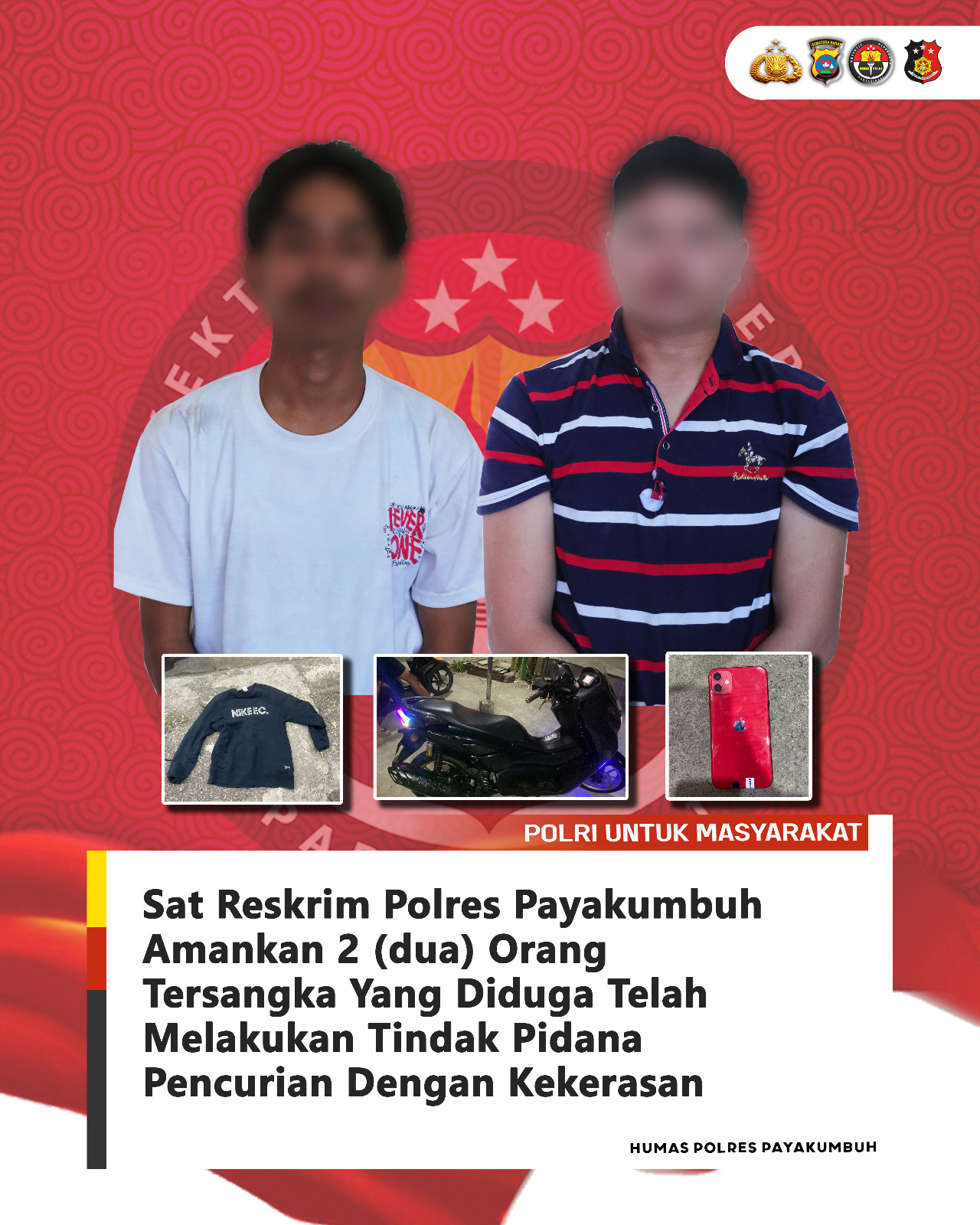 Polisi turut mengamankan satu unit iPhone 11 warna merah yang diketahui dibeli dari hasil penjualan cincin korban. Saat ini kedua tersangka telah ditahan untuk menjalani proses hukum lebih lanjut, sementara polisi menegaskan komitmennya menjaga keamanan dan memberikan kepastian hukum bagi masyarakat Payakumbuh.( HMS)