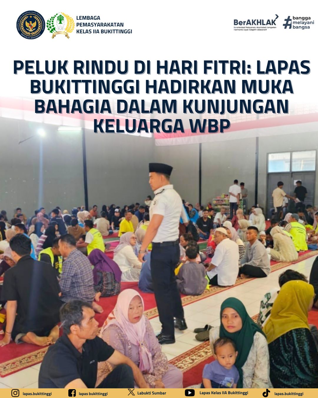 Kegiatan kunjungan Hari Raya di Lapas Bukittinggi tahun ini kembali menegaskan bahwa di balik tembok pemasyarakatan, nilai-nilai kemanusiaan, kasih sayang, dan harapan tetap hidup. Pelukan singkat, doa, dan tawa yang tercipta di ruang kunjungan menjadi penanda bahwa pembinaan tidak hanya soal aturan, tetapi juga tentang merawat kemanusiaan.