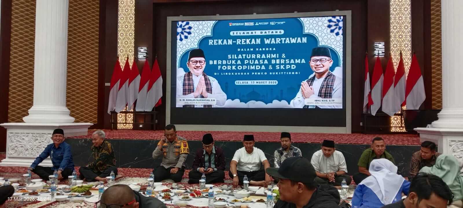 BUKITTINGGI — Pemerintah Kota Bukittinggi menggelar silaturahmi dan buka puasa bersama insan pers yang bertugas di wilayah tersebut pada Selasa (17/3/2026). Acara yang berlangsung hangat itu turut dihadiri unsur Forum Koordinasi Pimpinan Daerah (Forkopimda) serta seluruh jajaran Satuan Kerja Perangkat Daerah (SKPD).